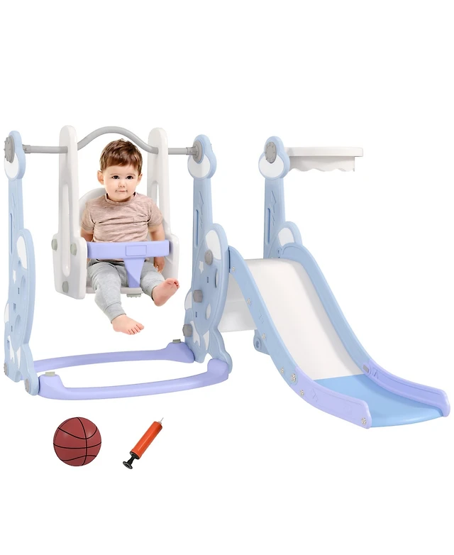 Baby Rocking Horse Slide Set 4-in-1 Kids Swing Toys w/Basketball Hoop Ferrule