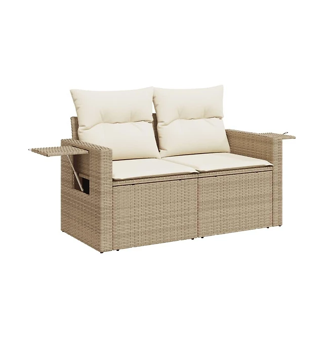 Garden Sofa Beige Pe Rattan, Powder-Coated Steel Medium Foldable