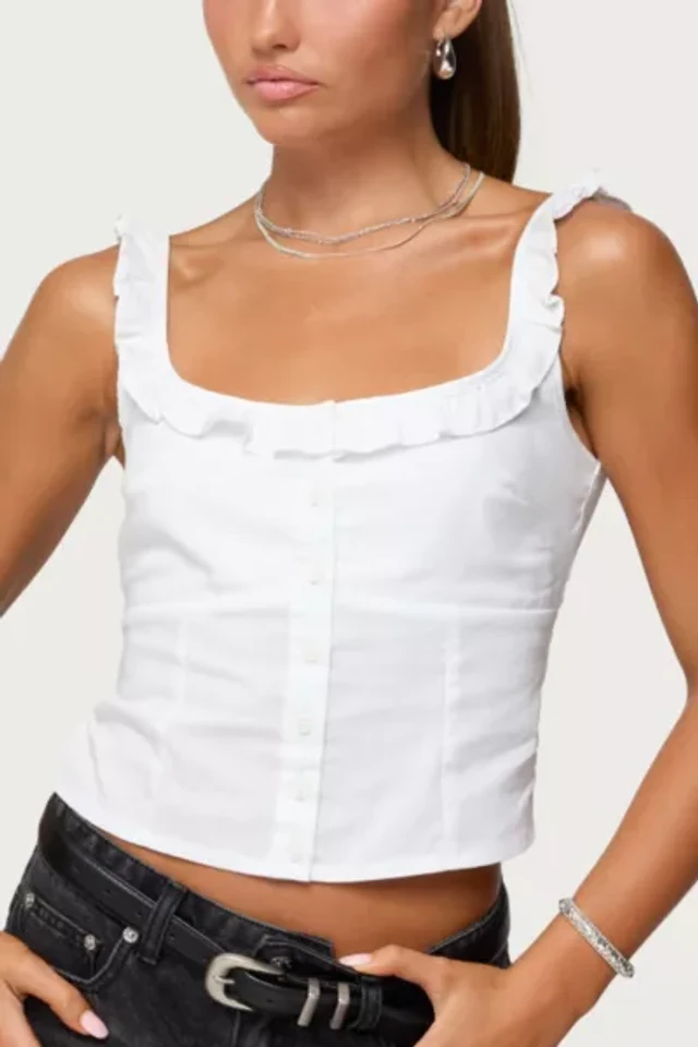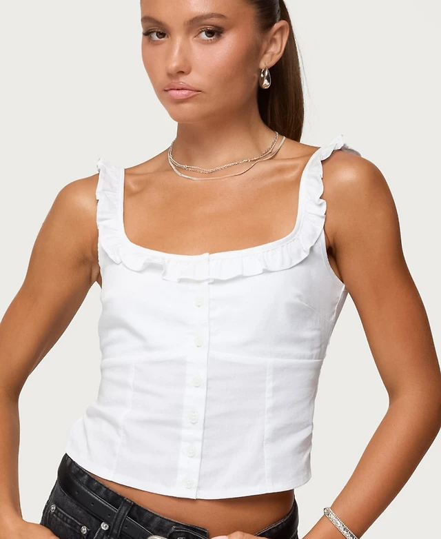 Edikted Noga Ruffle Woven Button Up Top