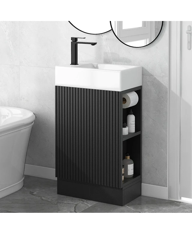 Streamdale 18.6" Bathroom Vanity with Sink, Bathroom Vanity Cabinet with Two-tier Shelf, Left or Right Orientation, White