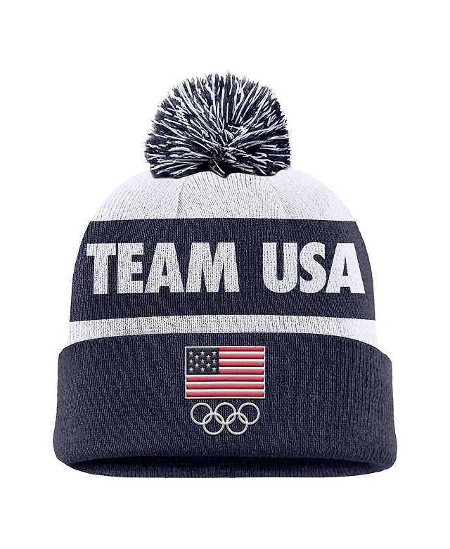 Nike Men's Navy Team Usa Peak Cuffed Pom with Knit Hat