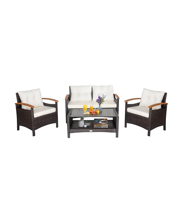 Gymax Pcs Patio Furniture Set w/Washable Cushions & Tempered Glass Coffee Table