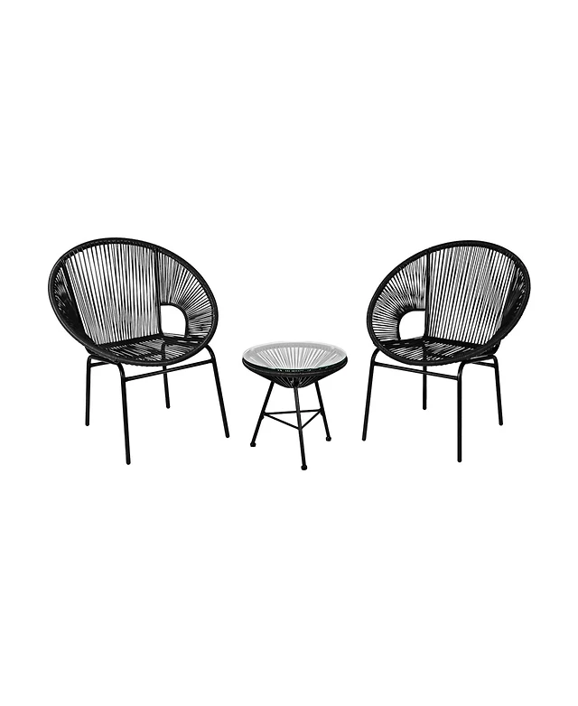 3 Pieces Outdoor Bistro Pe Wicker Conversation Furniture Set-White