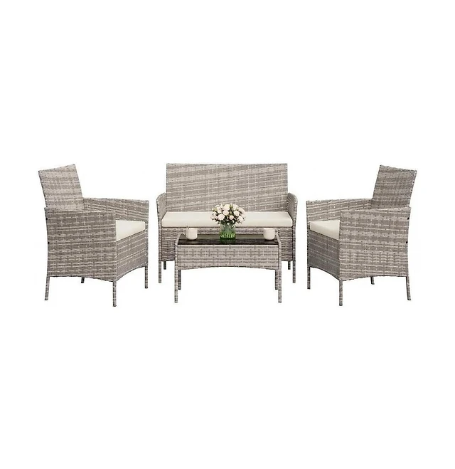 gaomon 4-Piece Rattan Patio Furniture Set with Upholstered Sofa and Coffee Table