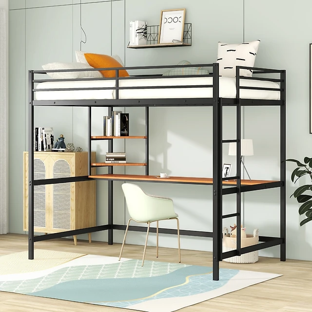 Streamdale Metal Loft Bed with Desk, Storage Ladder & Wardrobe