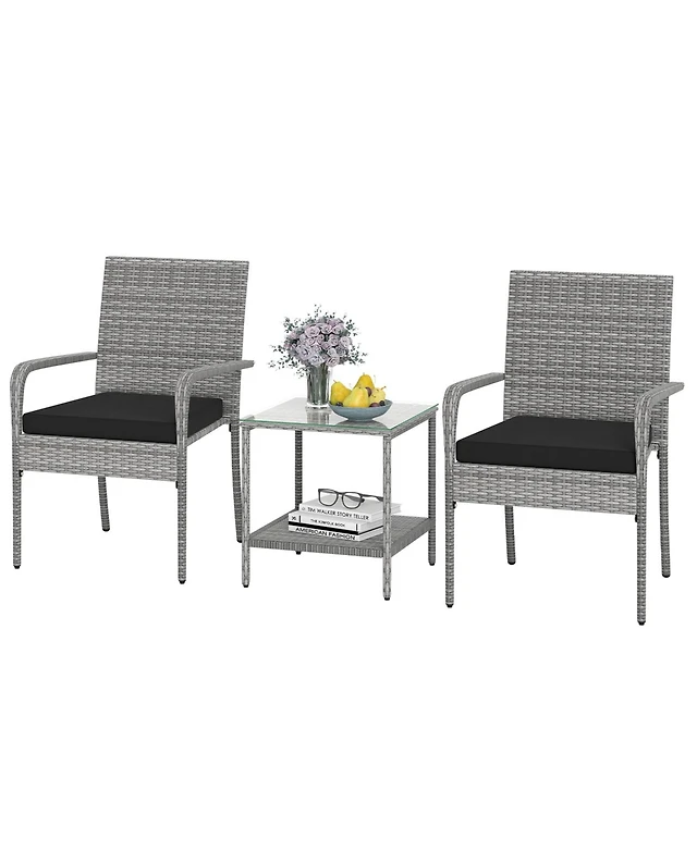 Gymax 3PCS Outdoor Rattan Conversation Set Patio Furniture Set w/ Cushions