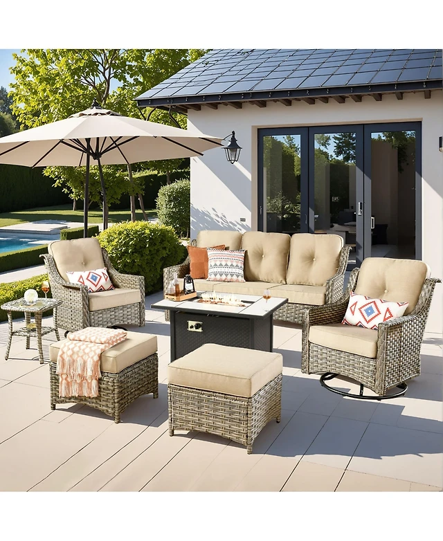 Xizzi 9 Piece Outdoor Patio Furniture with 3 Seat Sofa,All Weather Wicker Coversation Set Swivel Rocking Chair,Balcony Sofa Solar Nestin