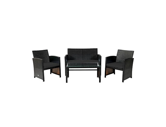 4 Pieces Patio Rattan Cushioned Furniture Set