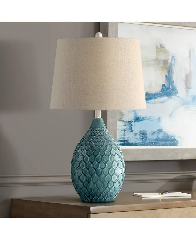 Regency Hill Kylie Cottage Table Lamp 26 1/2" High Mother of Pearl Tile Vase Beige Drum Shade for Bedroom Living Room Bedside Nightstand Office K