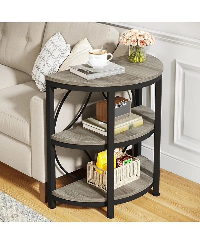 Farmhouse Multi-Purpose Rustic Side Table with Shelf - Brown/White