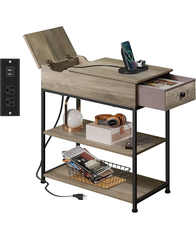 Wlive End Table with Charging Station, Side Table with Usb Ports and Outlets, Narrow Side Table for Small Spaces, Living Room, Couch
