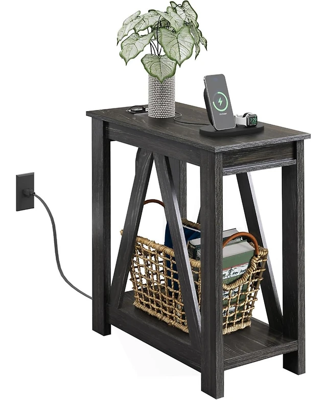 Wlive Farmhouse Nightstand, End Table with Charging Station, Bedroom Wooden Night Stand with 2 Storage Drawers, Side Table with Usb Ports and Outlets,