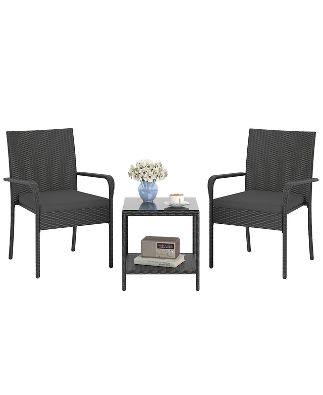 Gymax 3 Piece Patio Furniture Set Outdoor Wicker Chair & Table w/ Seat Cushions