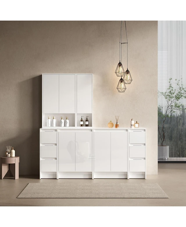 Streamdale Furniture 72" White Vanity Combo: 4-Storage & 2-Wall Cabinets, Soft Close