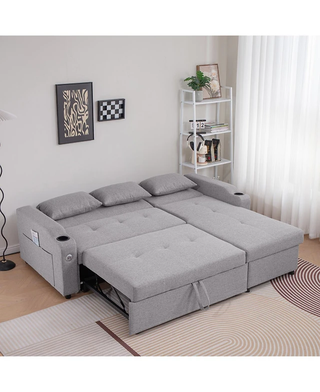 Streamdale Grey Linen Sleeper Sofa Bed with Pull Out Chaise