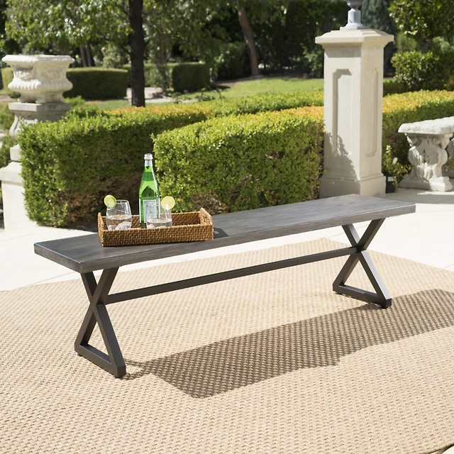 Streamdale 68.9W 37.4-inch Cast Aluminum Patio Dining Table With Black Frame and Umbrella Hole