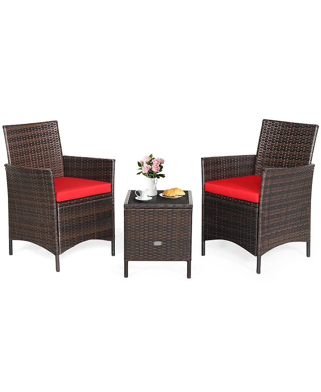 4PCS Rattan Patio Furniture Set Cushioned Sofa Chair Coffee Table Garden