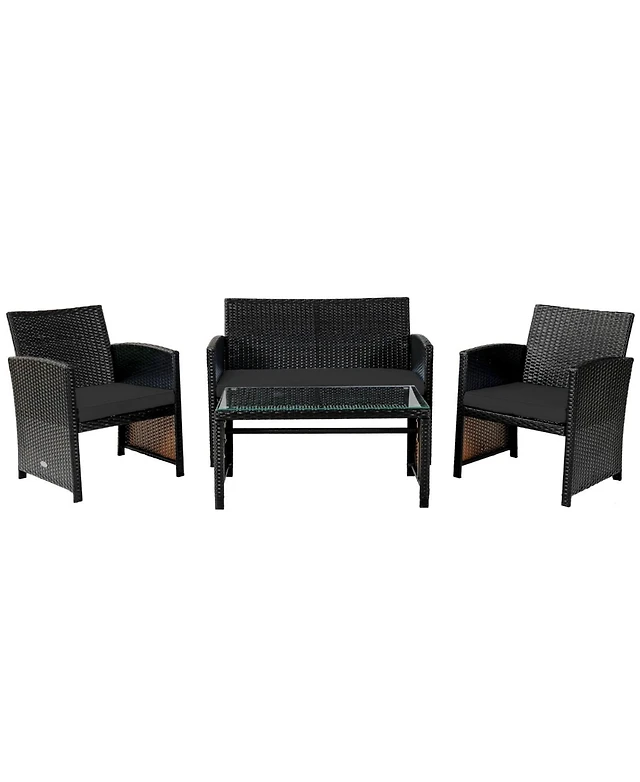 Gymax 3PCS Rattan Patio Conversation Furniture Set Outdoor Sofa Set w/ Cushions