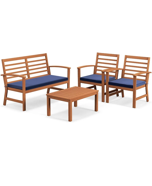 Gymax Set of 4 Wood Furniture w/ Seat Cushions & Solid Acacia Frame Outdoor