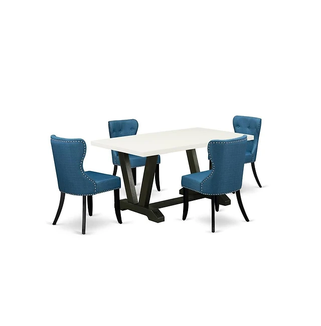 East West Furniture 5-Piece Fashionable Dining Room Set a Superb Linen White dining table Top and 4 Lovely Linen Fabric Dining Chairs with Stylish Cha