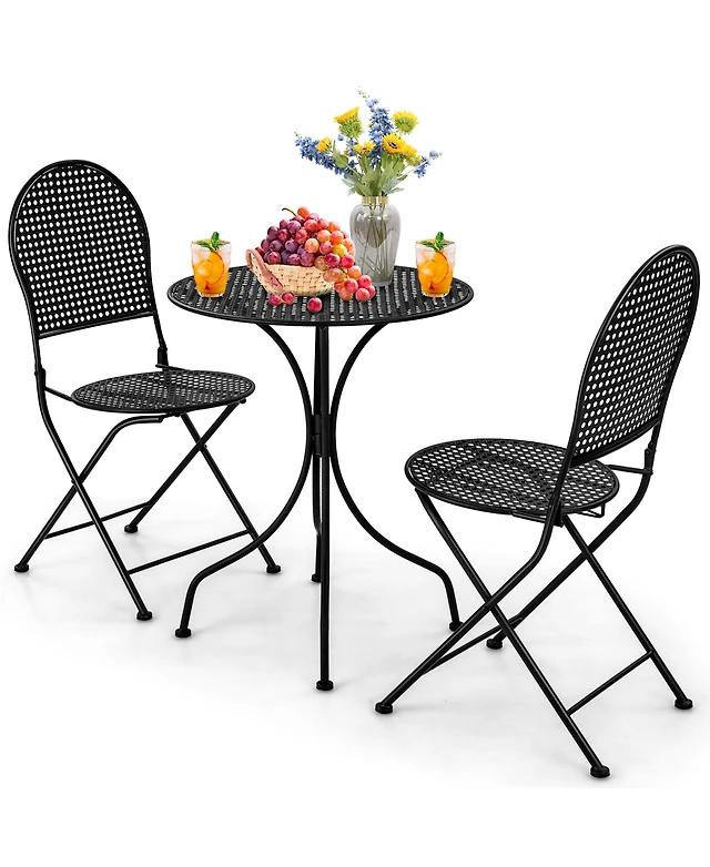 Gymax 3 Pcs Patio Bistro Set All-weather Metal Table & Chair Set for 2 Person Modern Furniture Set