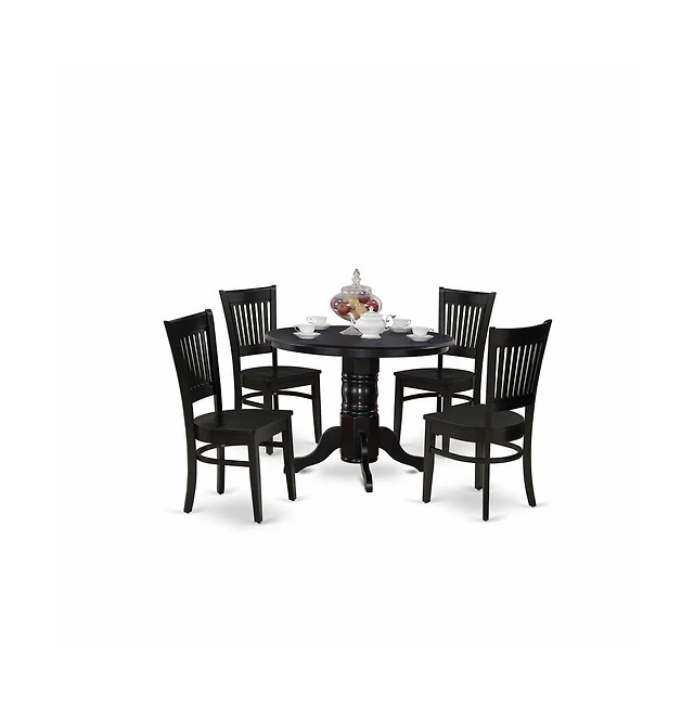 East West Furniture 5-Pc Dining Table Set- 4 Upholstered Dining Chairs with Black Linen Fabric Seat and Stylish Chair Back