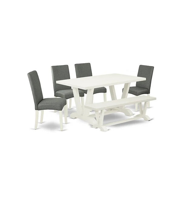 East West Furniture 6-Piece Stylish Dining Table Set an Excellent Cement Color Dining Table Top and Cement Color Dining Room Bench and 4 Excellent Lin