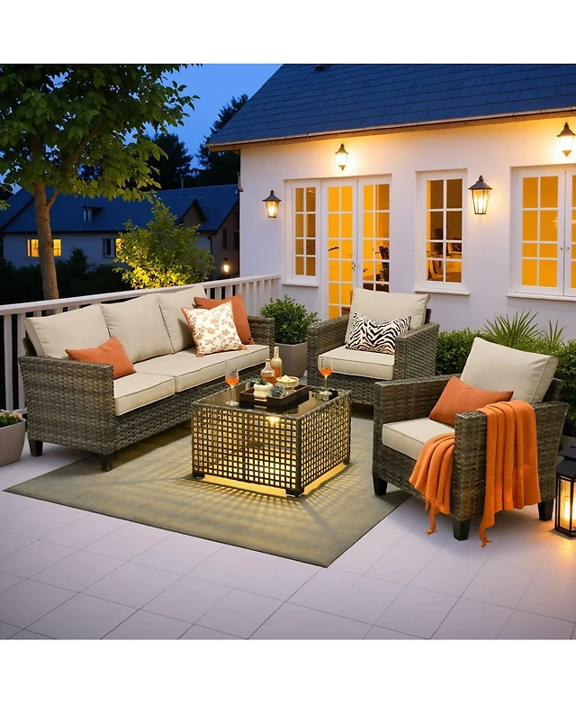 Xizzi 4 Pieces Outdoor Patio Furniture Set,Outside Conversation Set with All-Weather Wicker Sofa,Deep Seating Cushions and Solar Powered Coffee Table