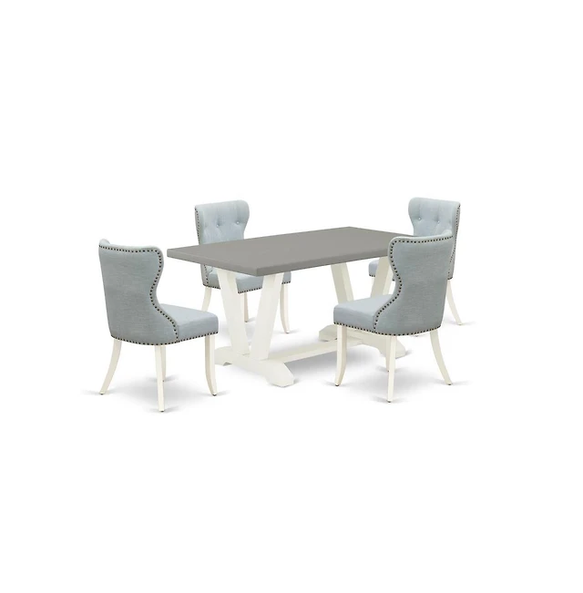 East West Furniture 5-Piece Modern Dining Table Set- 4 Dining Chair with Baby Blue Linen Fabric Seat and Button Tufted Chair Back