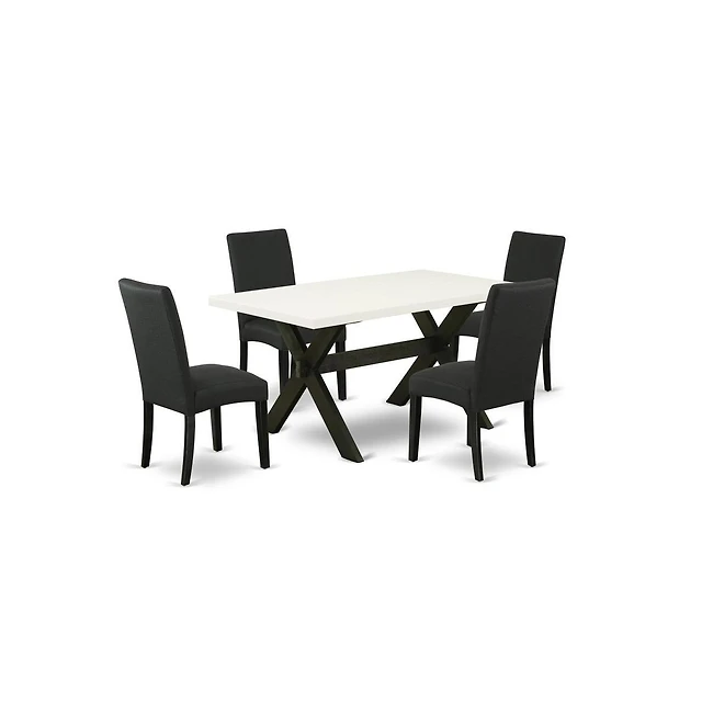 East West Furniture 5-Piece Amazing Modern Dining Table Set a Good Linen White Wood Dining Table Top and 4 Gorgeous Linen Fabric Padded Parson Chairs
