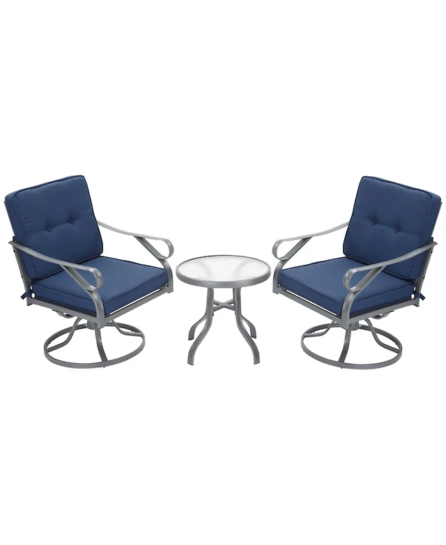 Outsunny 3 Piece Patio Bistro Set, Outdoor Conversation Furniture, 2 Swivel Rocking Chairs, 1 Round Tempered Glass Coffee Table, Soft Removable Cushio