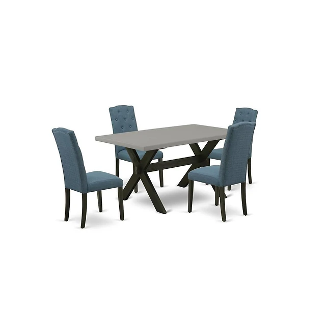East West Furniture 5-Piece Awesome Dining Room Table Set a Good Cement Color Wood Dining Table Top and 4 Awesome Linen Fabric Parson Chairs with Styl