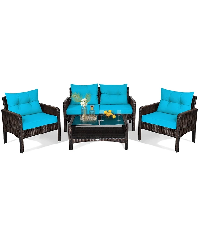 Gymax 4PCS Rattan Patio Furniture Conversation Set Cushioned Outdoor Furniture Set
