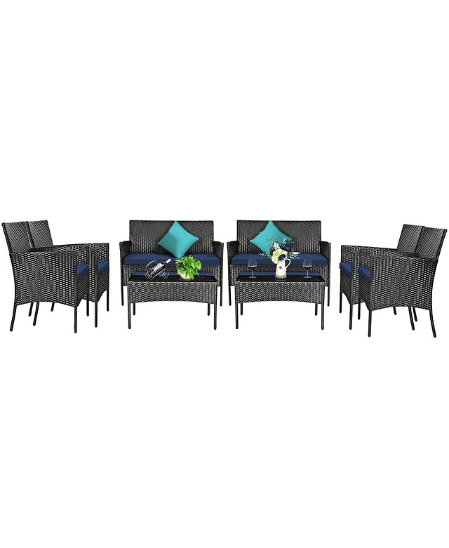 Gymax Set of 6 Rattan Furniture Set Patio Cushioned Sofa Coffee Table