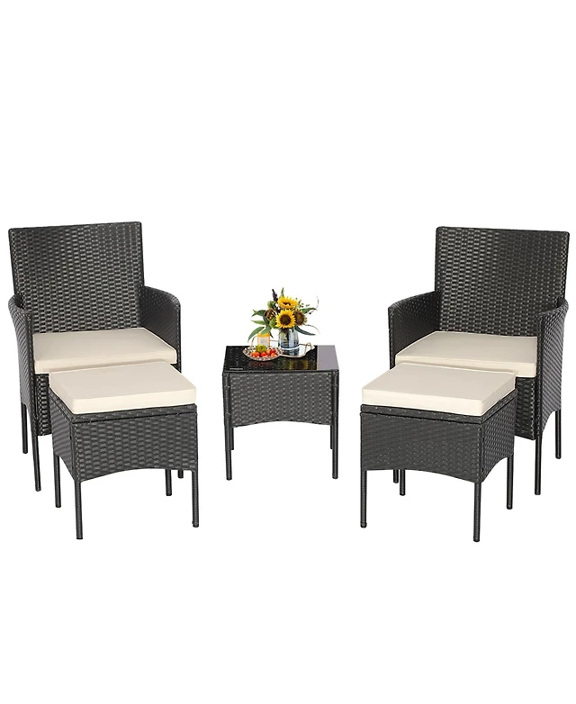 Gymax 4PCS Rattan Outdoor Conversation Set Patio Furniture Set w/ Red Cushions
