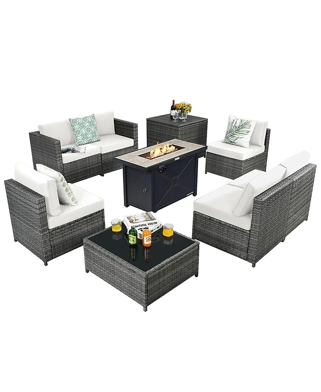 Sugift 8 Pieces Patio Rattan Furniture Set with Storage Waterproof Cover and Cushion-Gray