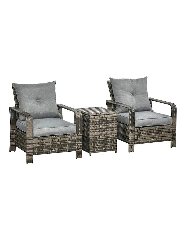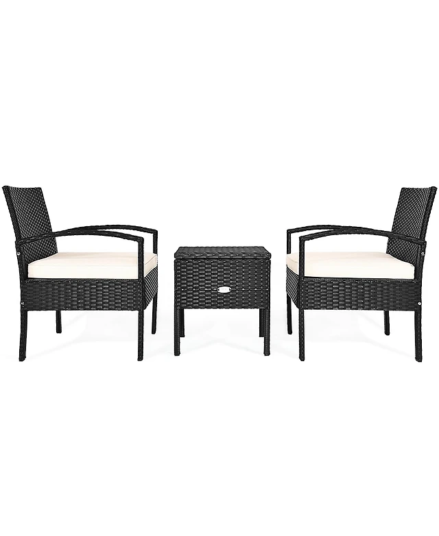 Gymax 3 Piece Outdoor Rattan Conversation Furniture Set w/ Cushion & Storage Table