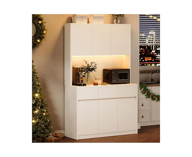 gaomon 71" Tall Kitchen Pantry Cabinet, Kitchen Hutch Storage Cabinet with Led Lights and Power Outlets, Food Pantry Cabinet with Microwave Stand, Adj