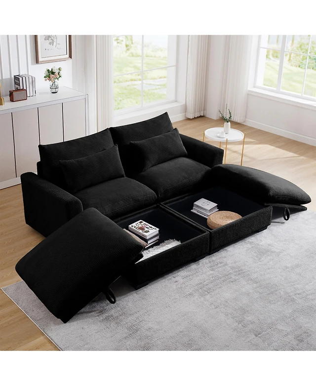 Streamdale Furniture Corduroy Two-Seater Sofa with 2 Storage Footrest,2 Seater Sectional deep seat sofa,Comfy Couches for Living Room,Black Sofa