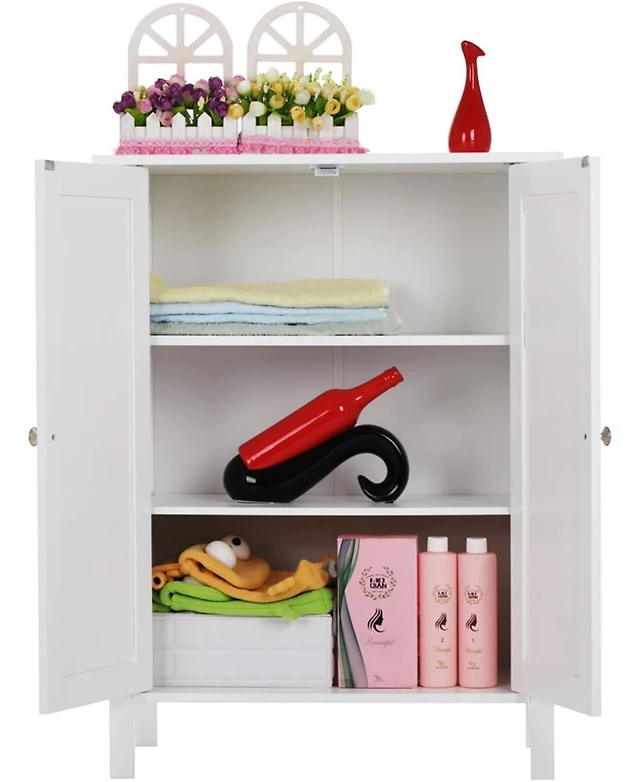 Vanirror Compact Storage Cabinet with Doors & Adjustable Shelf - White Bathroom Furniture for Multi-Room Organization