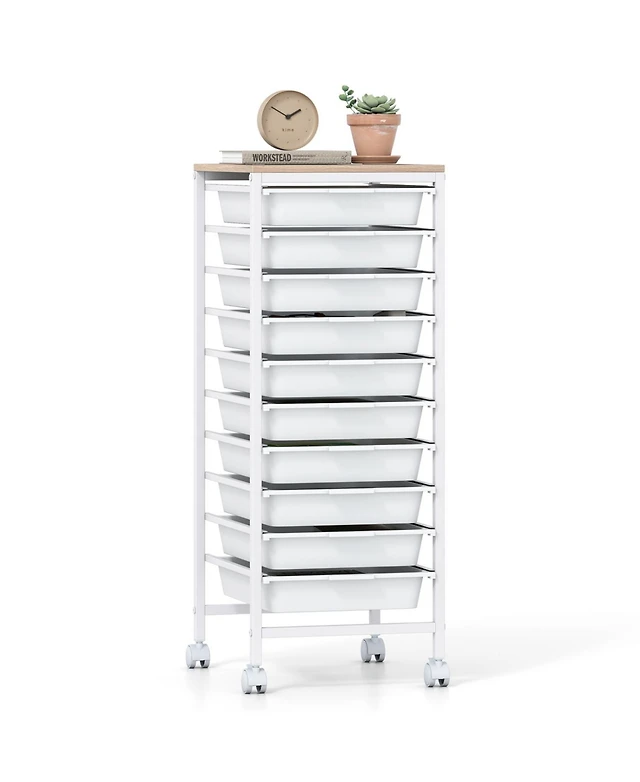Sugift 10-Drawer Rolling Storage Cart Mobile Utility Organizer with Wooden Tabletop and Lockable Wheels