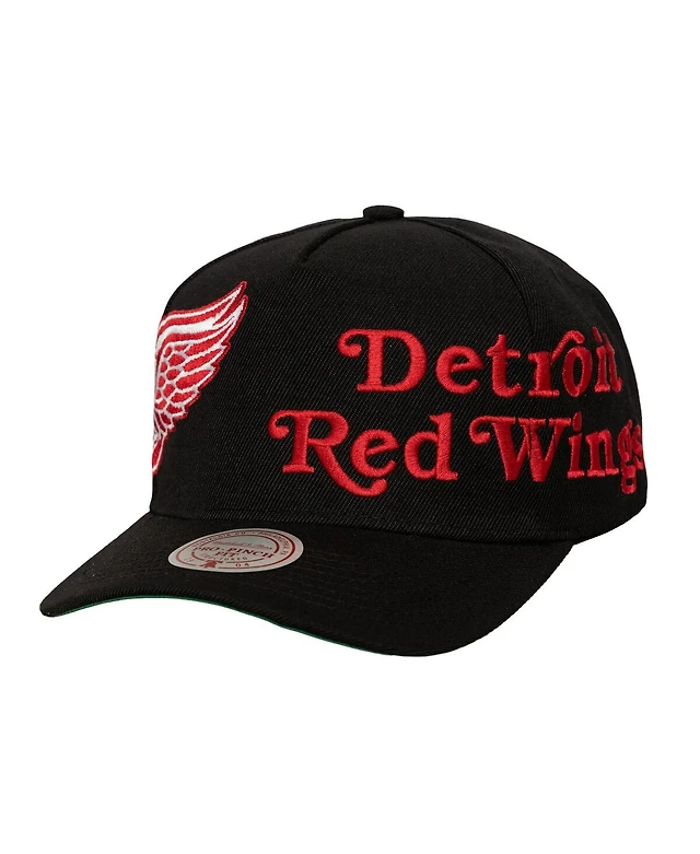 Mitchell & Ness Men's Black Detroit Red Wings Busted Logo Wordmark Wrap-Around Pro Pinch Adjustable Hat