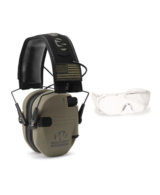 Walker's Razor Slim Electronic Muffs (Fde Patriot) with Shooting Glasses