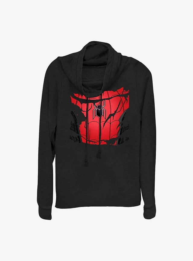 Marvel Spider-Man Spiderman Torn Suit Cowlneck Long-Sleeve Girls Top