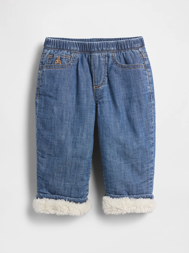 Baby Sherpa-Lined Pull-On Barrel Jeans