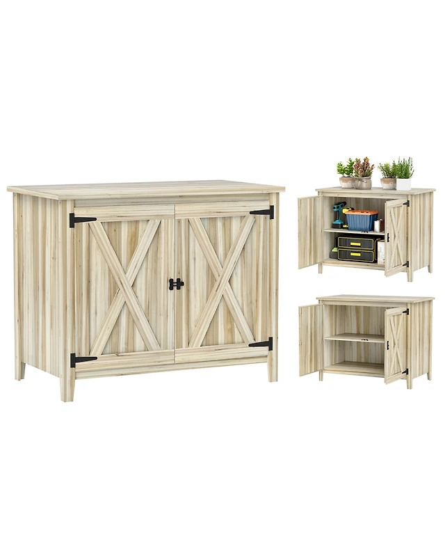 Outsunny Outdoor Storage Table, Wooden Tool Shed w/Shelves,