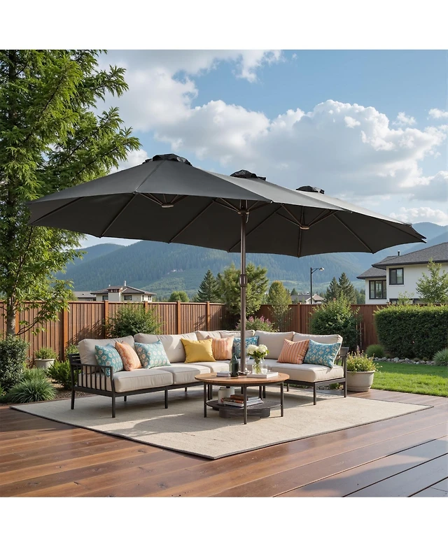 Flynama Patio Umbrella 15' Steel Rectangular Outdoor Double Sided Market with base, Sun Protection & Easy Crank