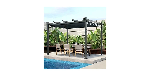 Slickblue Outdoor Retractable Pergola with Sun Shade Canopy Aluminum