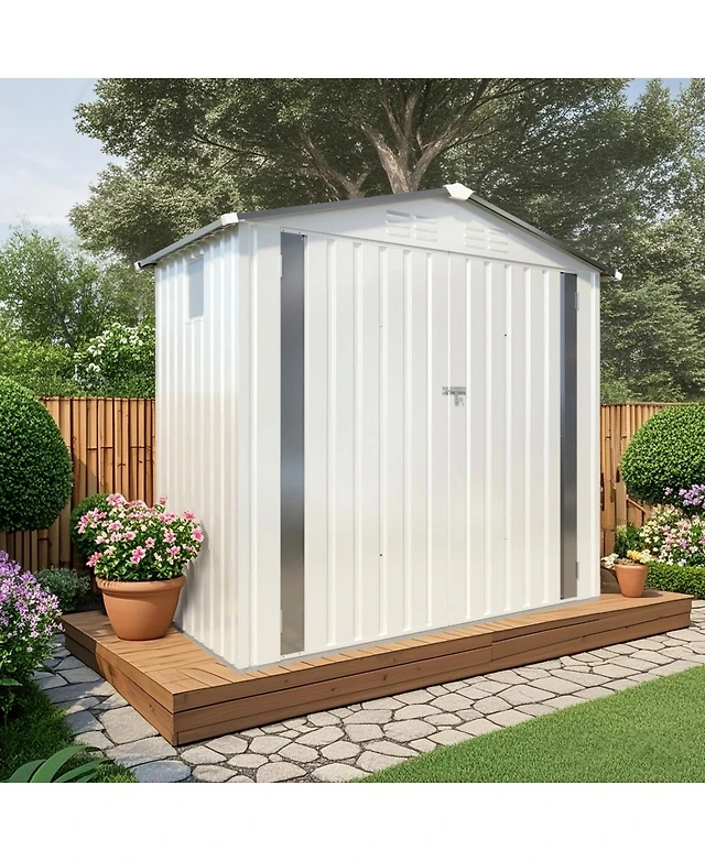 Outsunny 4' x 8' Storage Shed, Galvanized, Locking, Light