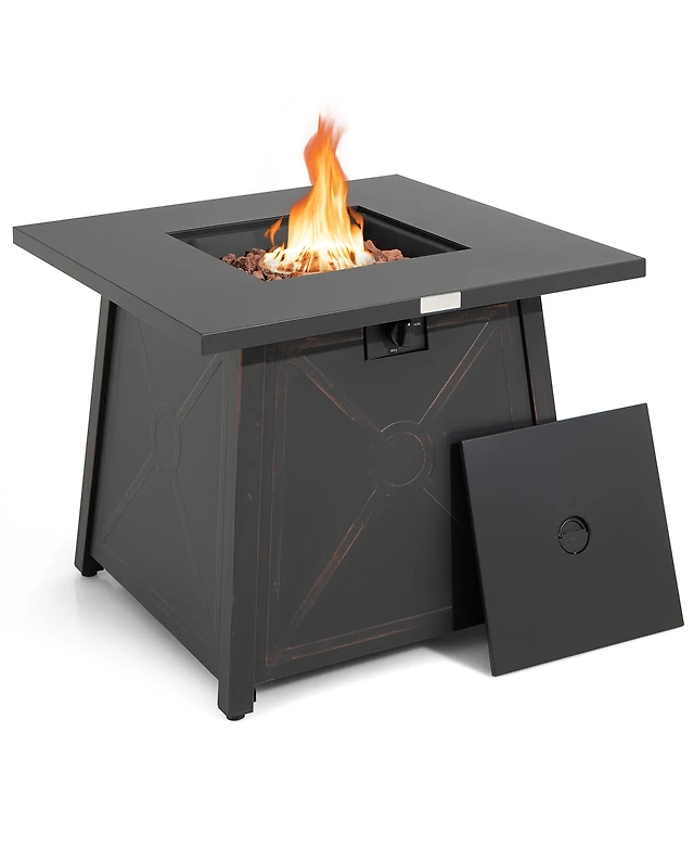 Yaheetech 32'' Outdoor Square Fire Pit with Cover & Poker